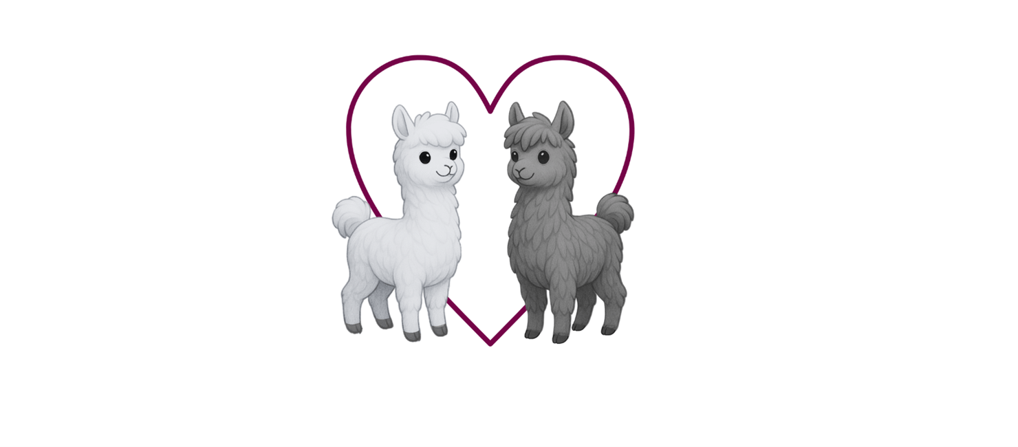Romeo ist ruhig und gemütlich, Samurai wachsam und ein bisschen nervös – doch zusammen sind die beiden Alpakas unschlagbar.